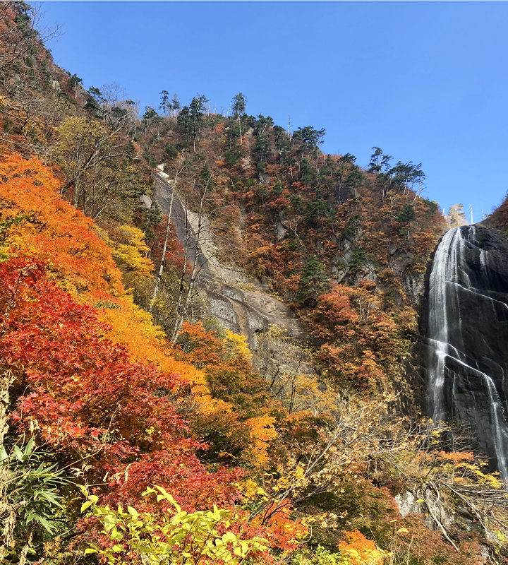森吉山東麓に位置する小又峡は、秋田県の名勝・天然記念物。「秋田県最後の秘境」とも呼ばれ、大小100以上の滝や深淵が織りなす原生的な渓谷です。1.8kmの遊歩道が整備されており、横滝や三角滝、穴滝など個性豊かな滝が連続し、終点では、高さ約20mの「三階滝」が訪れる人を圧倒します。