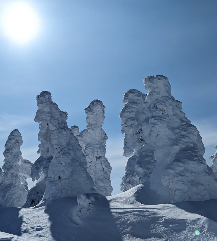 北秋田市にある森吉山は、標高1,454mの「花の百名山」です。春から夏にかけては多様な高山植物が咲き誇り、秋は錦のような紅葉、冬には日本三大樹氷のひとつ「森吉山の樹氷」と、四季折々の絶景が広がります。ゴンドラで手軽に8合目まで行くことができ、登山や散策を楽しめます。
